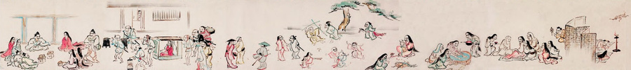一人の男の一生を描いた絵巻物。登場人物はすべて愛くるしい骸骨の姿で描かれています。